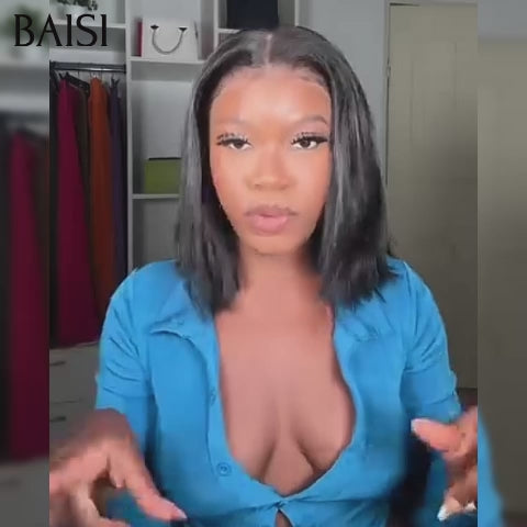 BAISI 13x4 Straight Bob Wig in Black Glueless Lace Front Cut Easy to Wear 100% Human Hair