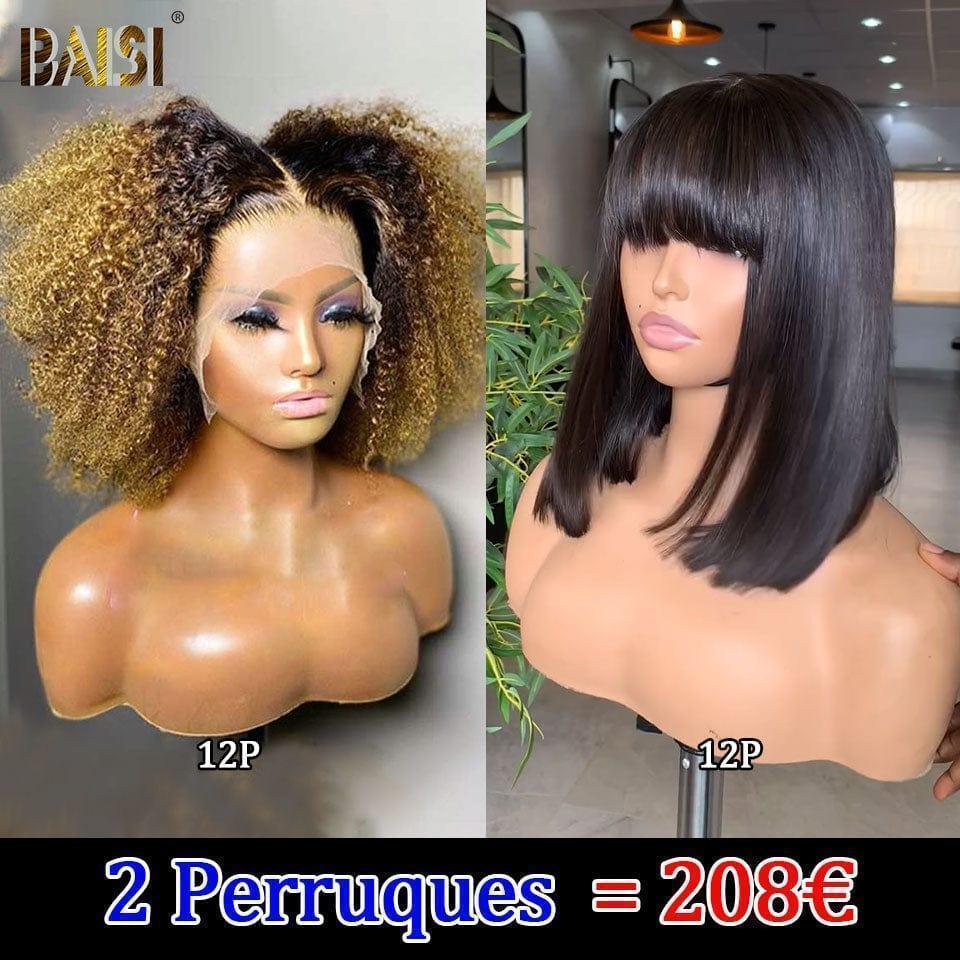 48H Livraison TVA 0€ BAISI 2 Perruques 79€ Sans Colle Facile à Porter finger wave et 4x4 lace 8 Pouces Lisse en 100% vrais cheveux humains