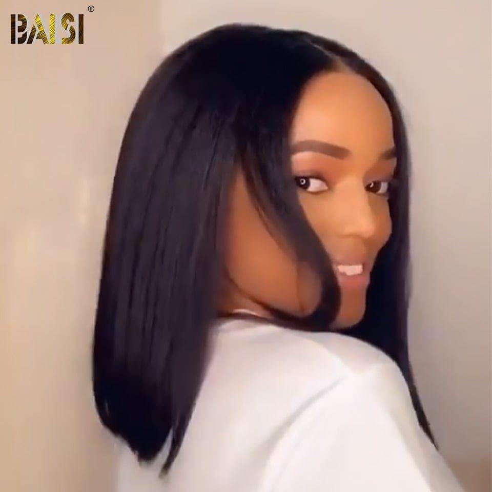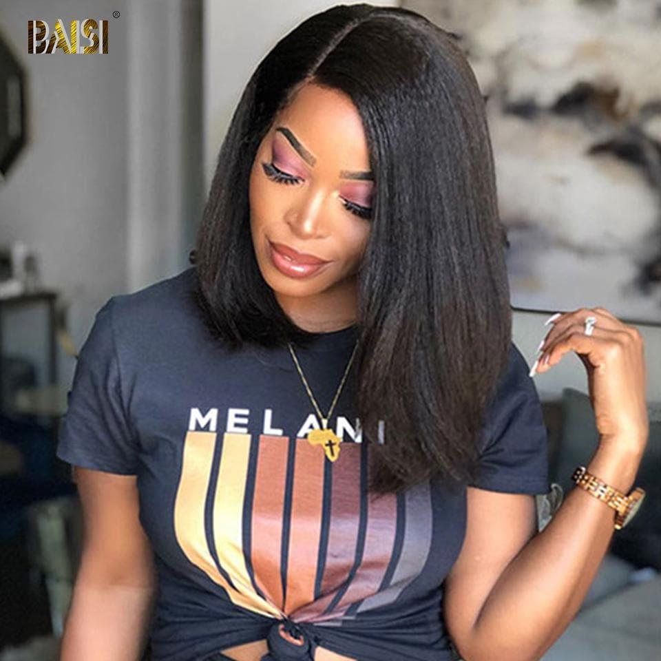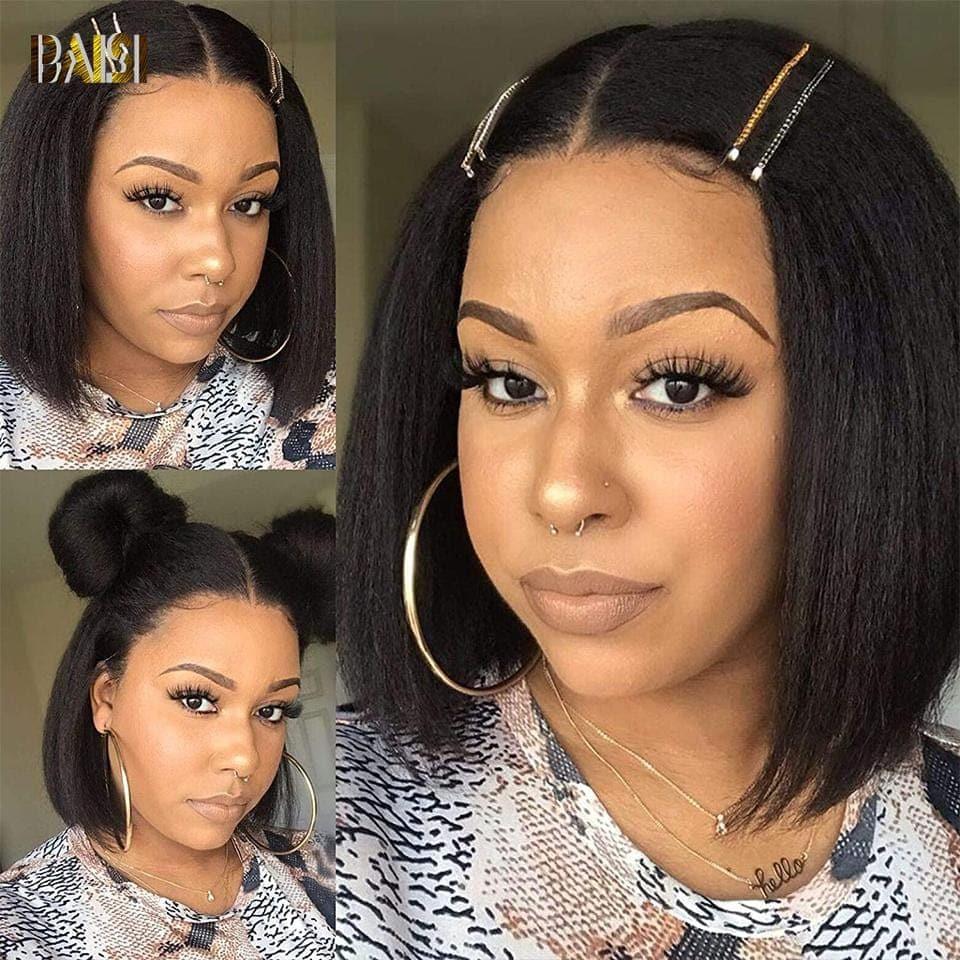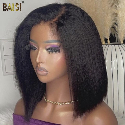 BAISI 4x4 Closure Wig Kinky Straight 200% Density 10-14 Inches