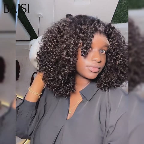 BAISI Vente Promo 119€ Vietnam Hair 300% densité 4X4 Perruque bob coupe personnalisée boucles voluminieux en Couleurs Noir 14 pouces plus de 20 ans d' utilisations BS120