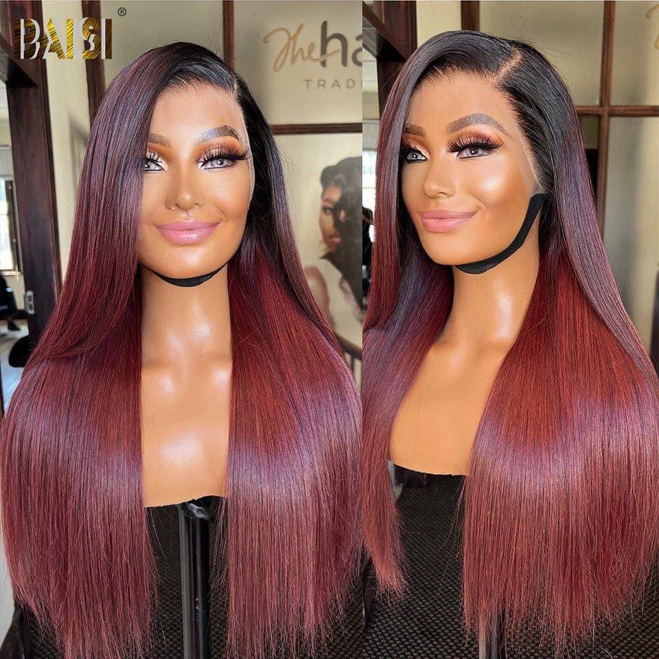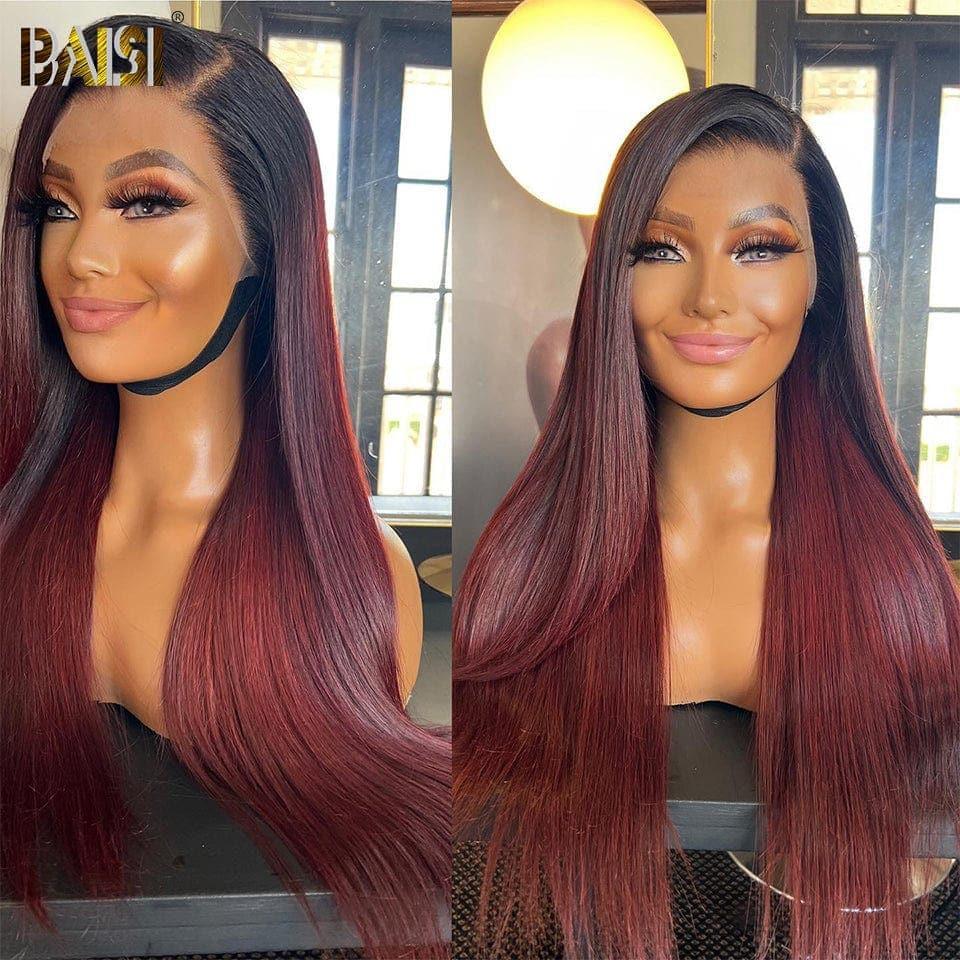 Achetez 2 Prix D'usine BAISI Buy at least 2 wigs at factory supplier price lace front 13*4 Straight Wig 1b Bordeaux Red (No Code Needed)