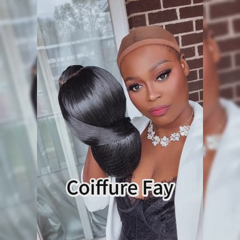 BAISI Coiffure de luxe Fay Perruques Mariage noir Prête à porter chignon et personalisation comme sur la vidéo 100% identique avec lace frontale événement spécial FR20