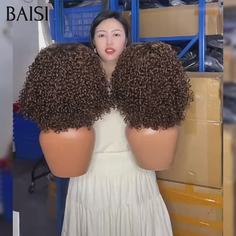 BAISI Perruques 4x4 Lace Perruque Marron 250% de volume densité water wave en 100% Cheveux Humains