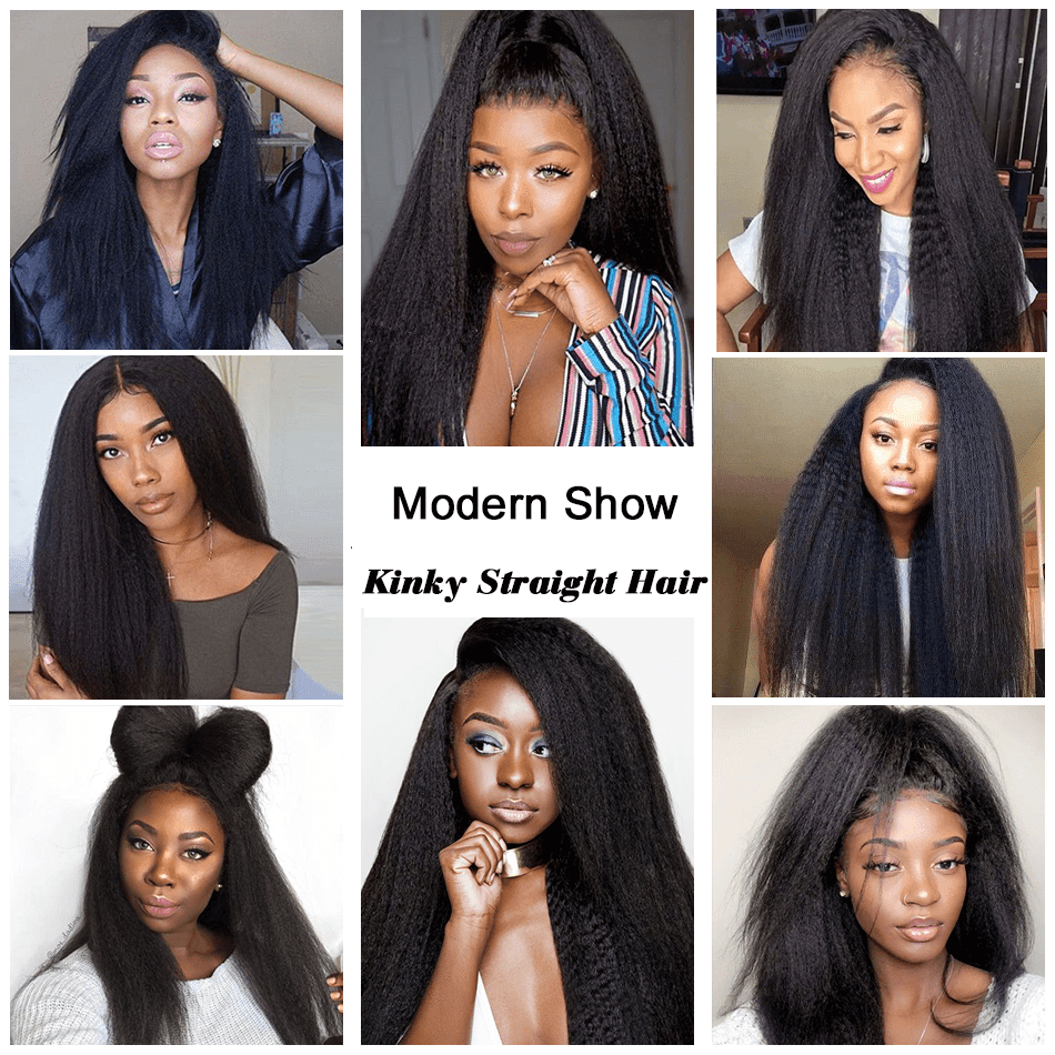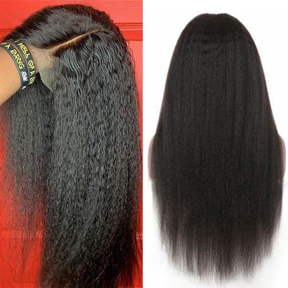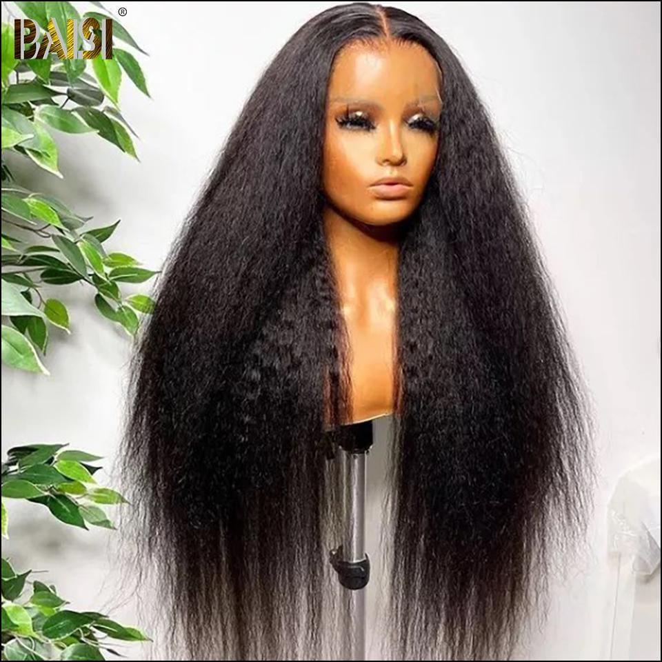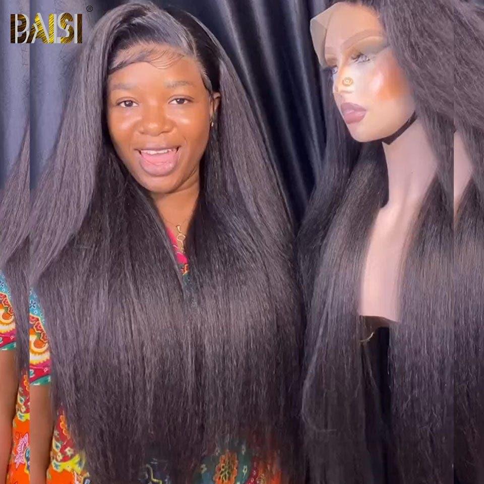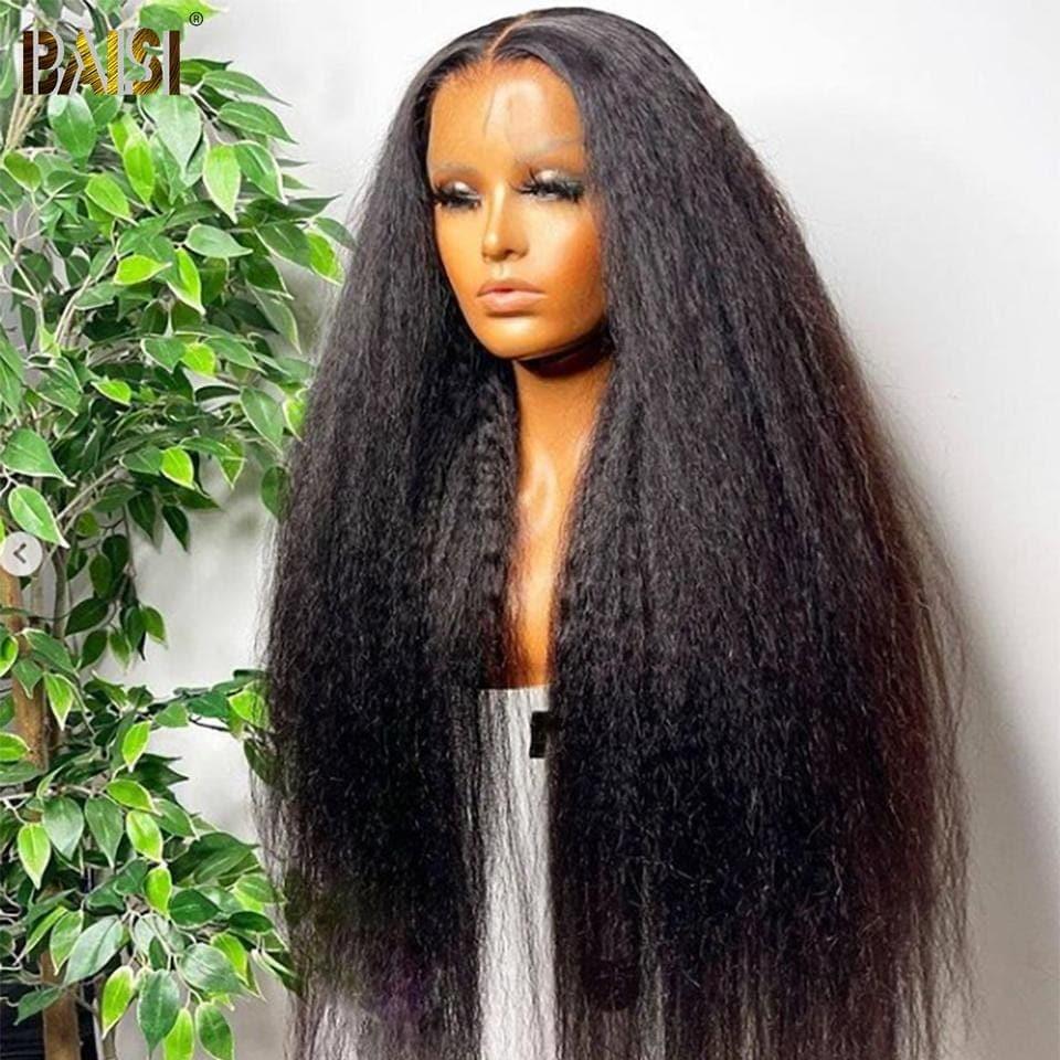 BAISI 12A 13x4 Frontal Lace Wig Curly Kinky Straight In 100% Human Hair