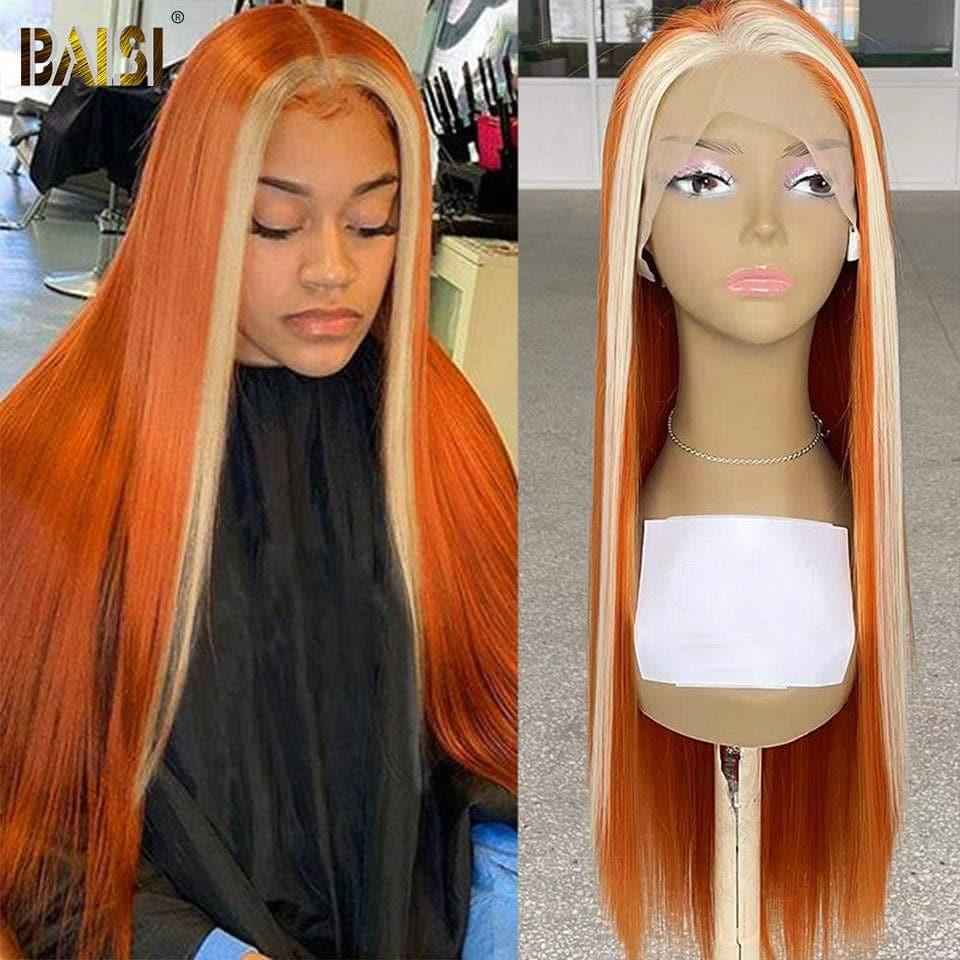 BAISI Lace Front Wig Smooth Brown Color MIX Blonde 4#Mix613# in 100% Real Human Hair