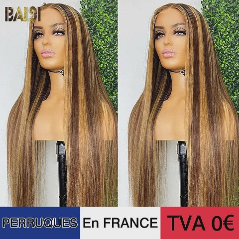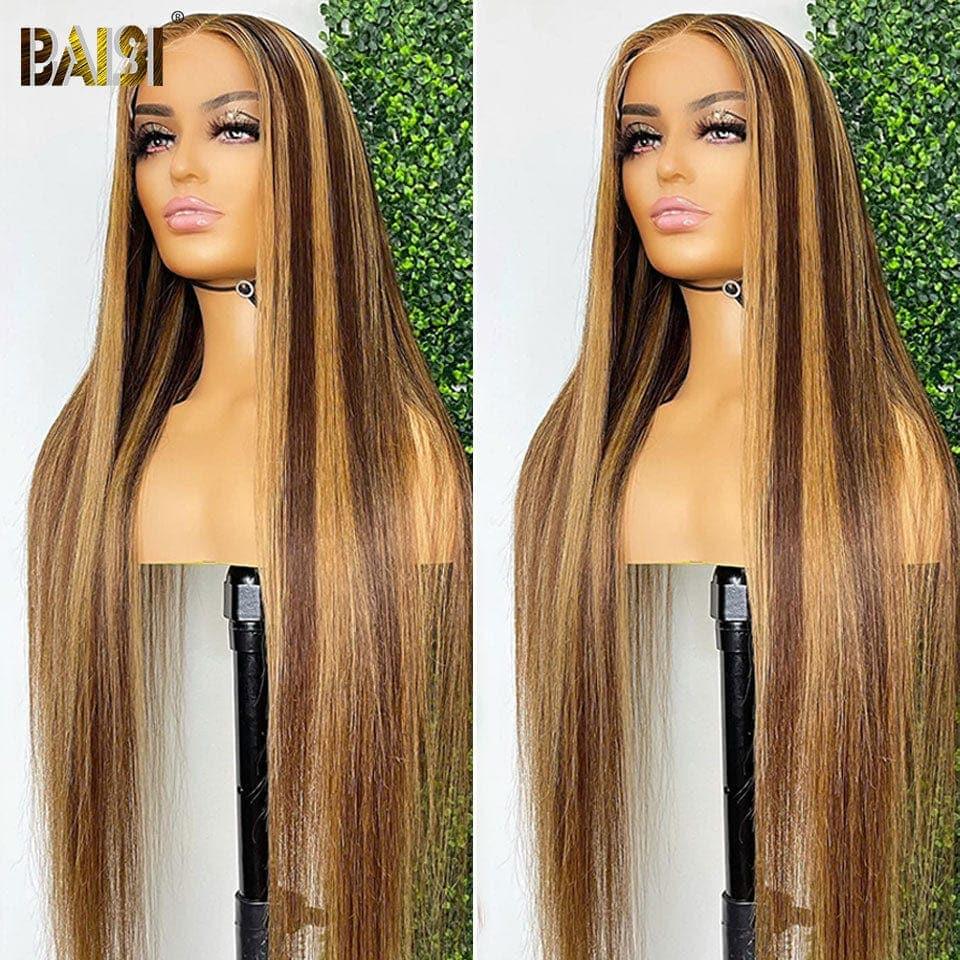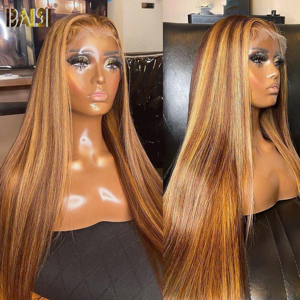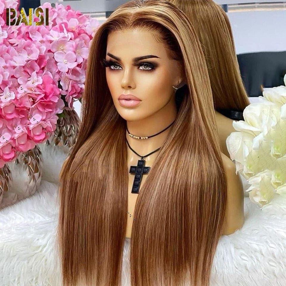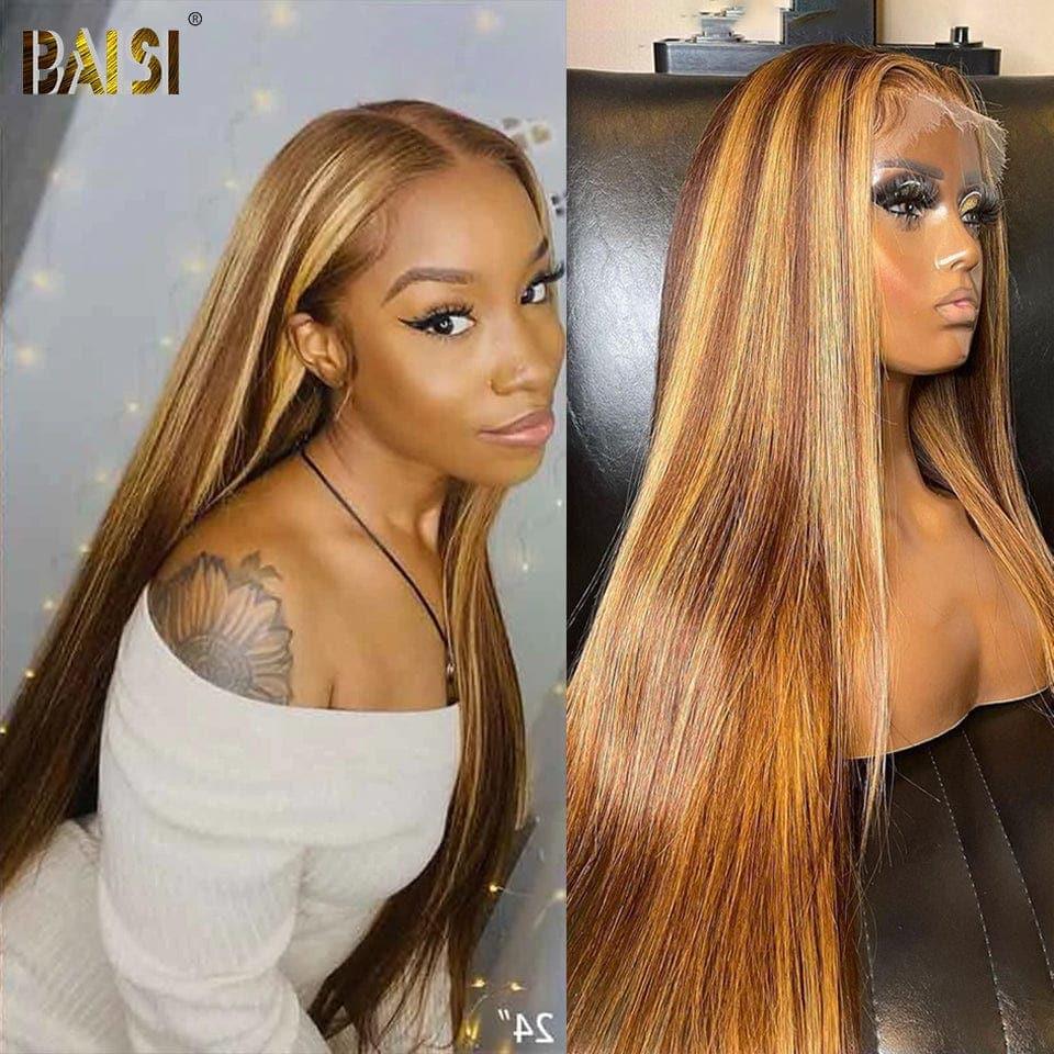 BAISI 13x4 Lace Frontal Wig Smooth Honey #4MIX#27 in 100% Human Hair