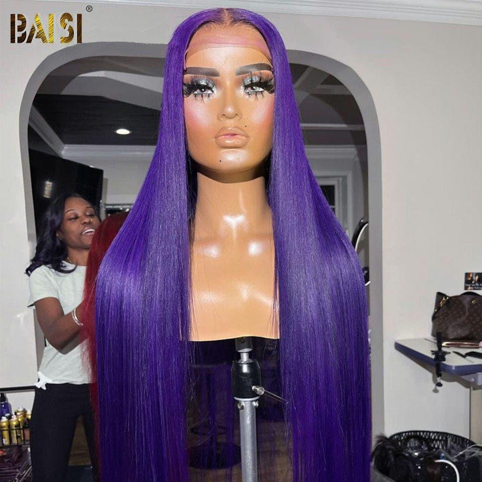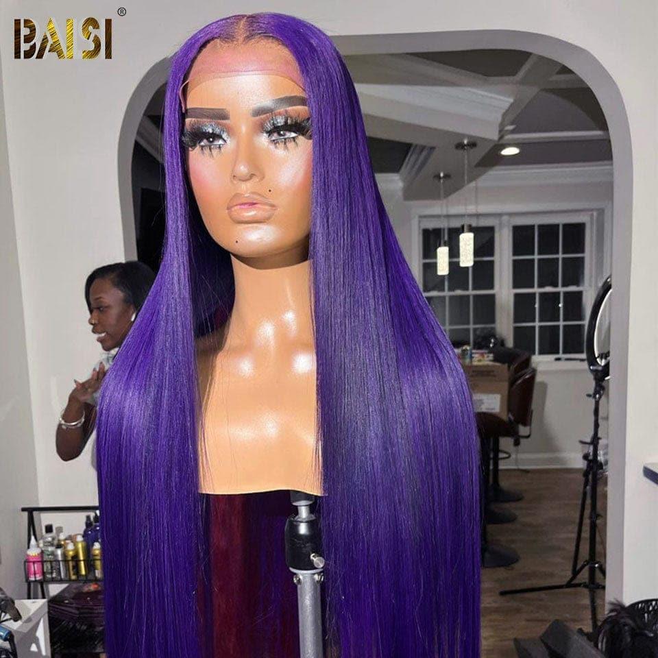 BAISI 13x4 Lace Frontal Wig Straight Purple in 100% Human Hair