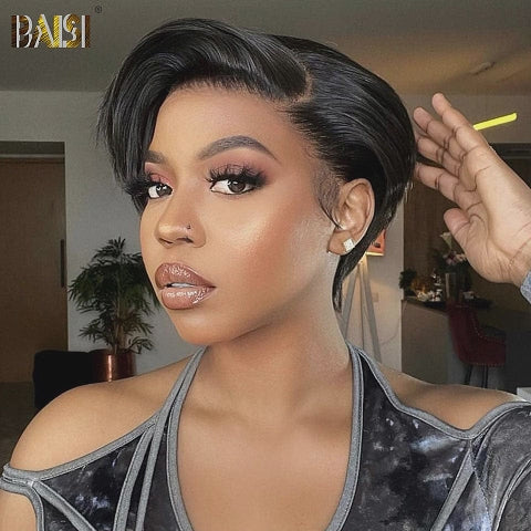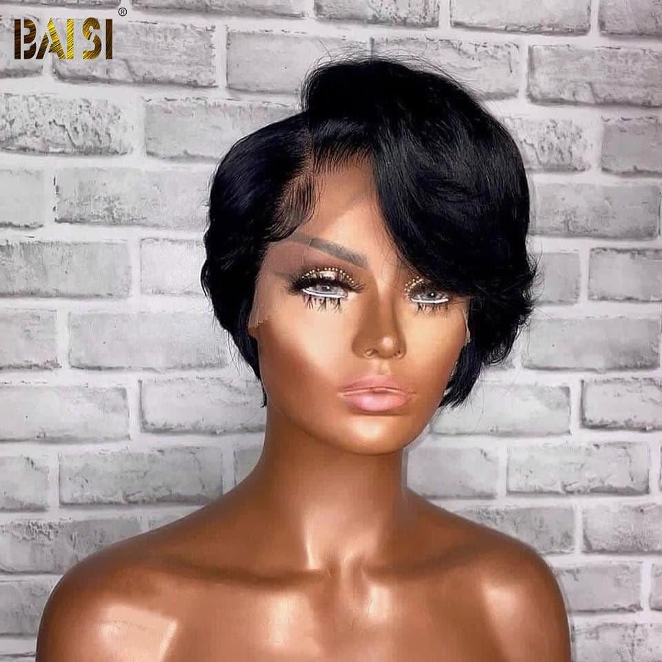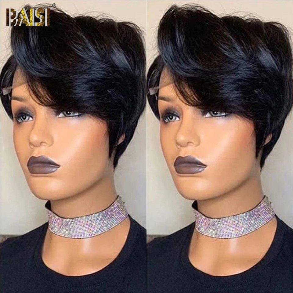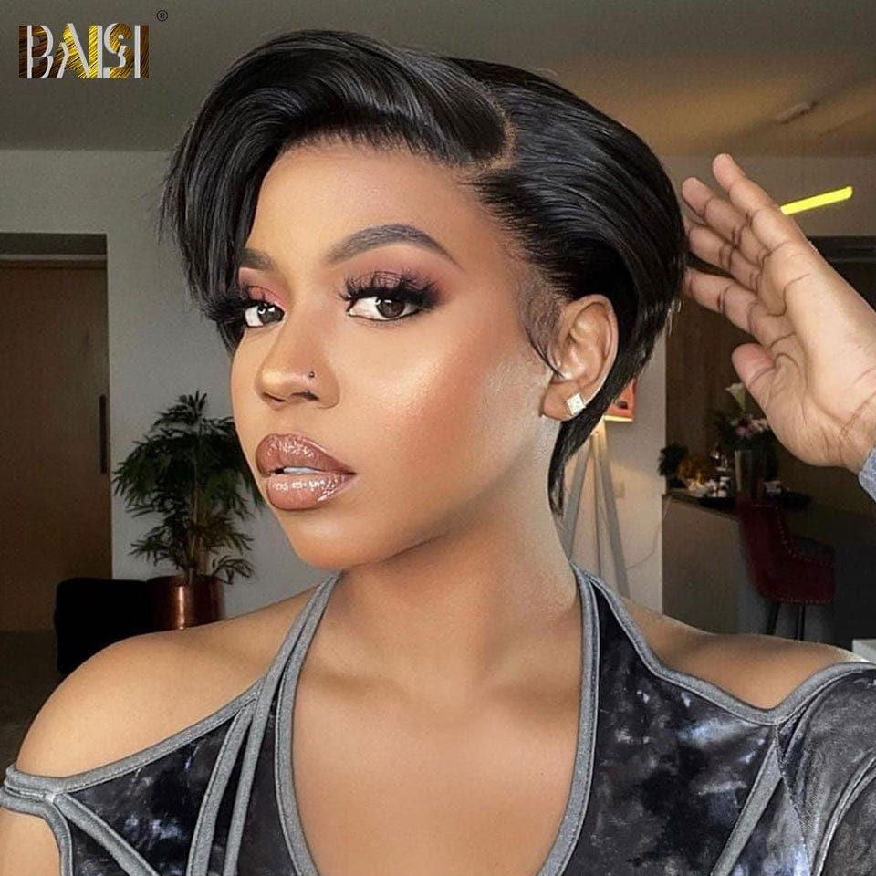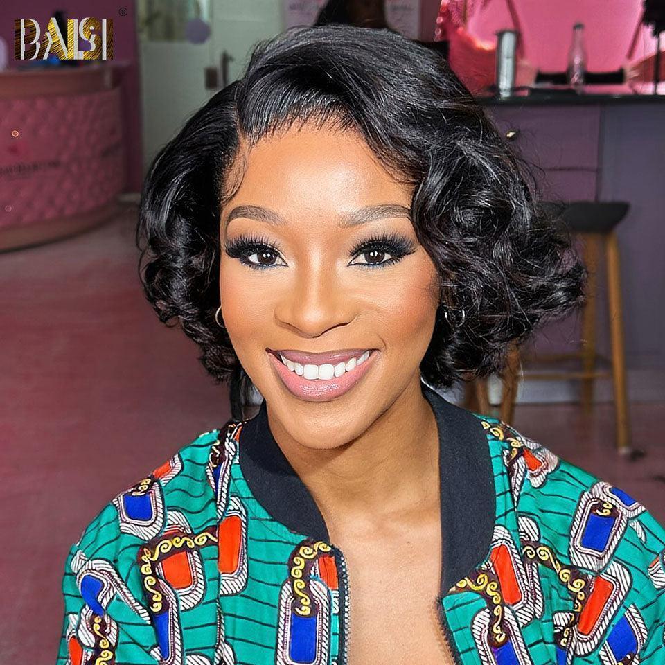 48H Livraison TVA 0€ BAISI Flash Sale 39€ Pixie Finger Wave Hairstyle in France 13x4 Lace Front Custom Wig With Side Part in Natural Color
