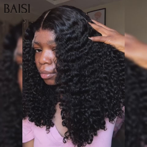 BAISI Perruques 4x4 Lace Perruque 169€ 18 Pouces 250% de volume water wave en couleur NOIR en 100% Cheveux Humains