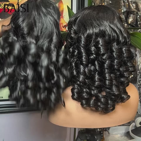 BAISI Peluca rizada con ondas de huevo de encaje 13X4, colores personalizados, 18 pulgadas, 300% de densidad, 198 € en cabello 100% humano
