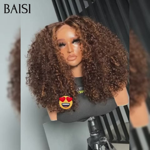 BAISI 13X4 lace perruque kinky curly frontale 20 pouces 229€ 300% densité en Couleur marron 4#mix30# 100% cheveux humains