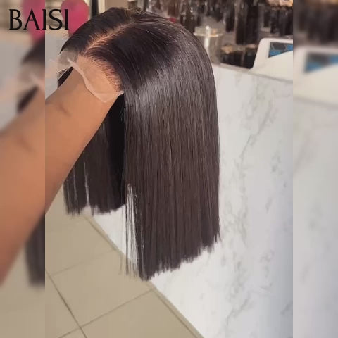 48H Livraison TVA 0€ Peluca Bob recta de encaje BAISI 4X4 de 8 pulgadas en color NEGRO, mezcla de Borgoña # 1Bmxi # 99J en cabello 100% crudo