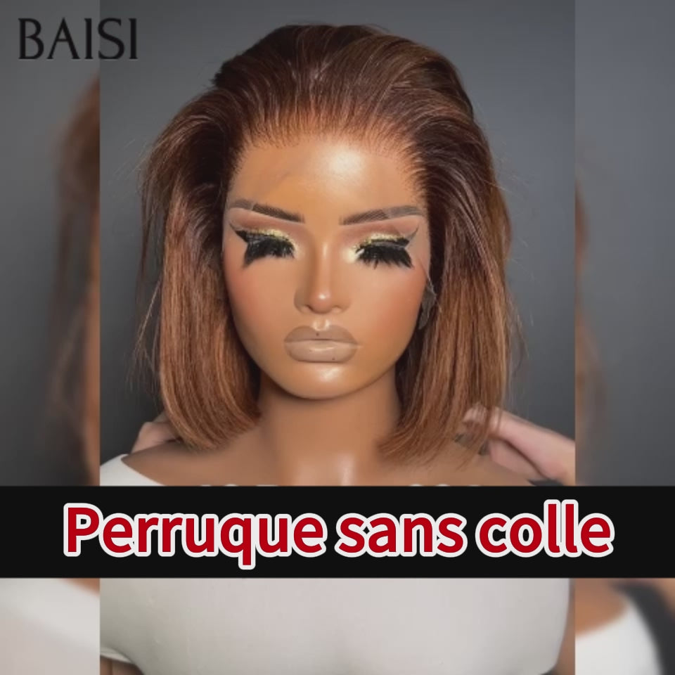 BAISI PROMO 13X4 Perruque Bob Lisse 1BT33# 10P Pré-plucked Pas Besoin de Colle en 100% Raw Hair Lace déjà couper
