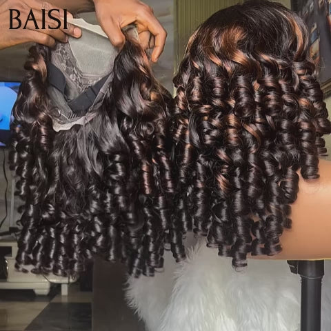 BAISI Peluca rizada con ondas de huevo de encaje 13X4, colores personalizados, 18 pulgadas, 300% de densidad, 198 € en cabello 100% humano