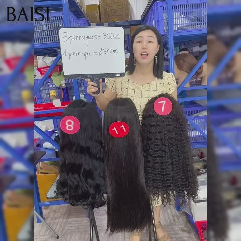 BAISI Lot de 3 perruques Flash Offer PROMOTION 300€ Vente en gros 13X4 lace 24 Pouces curly wave et body wave et lisse NOIR en 100% vrais cheveux humains BS65