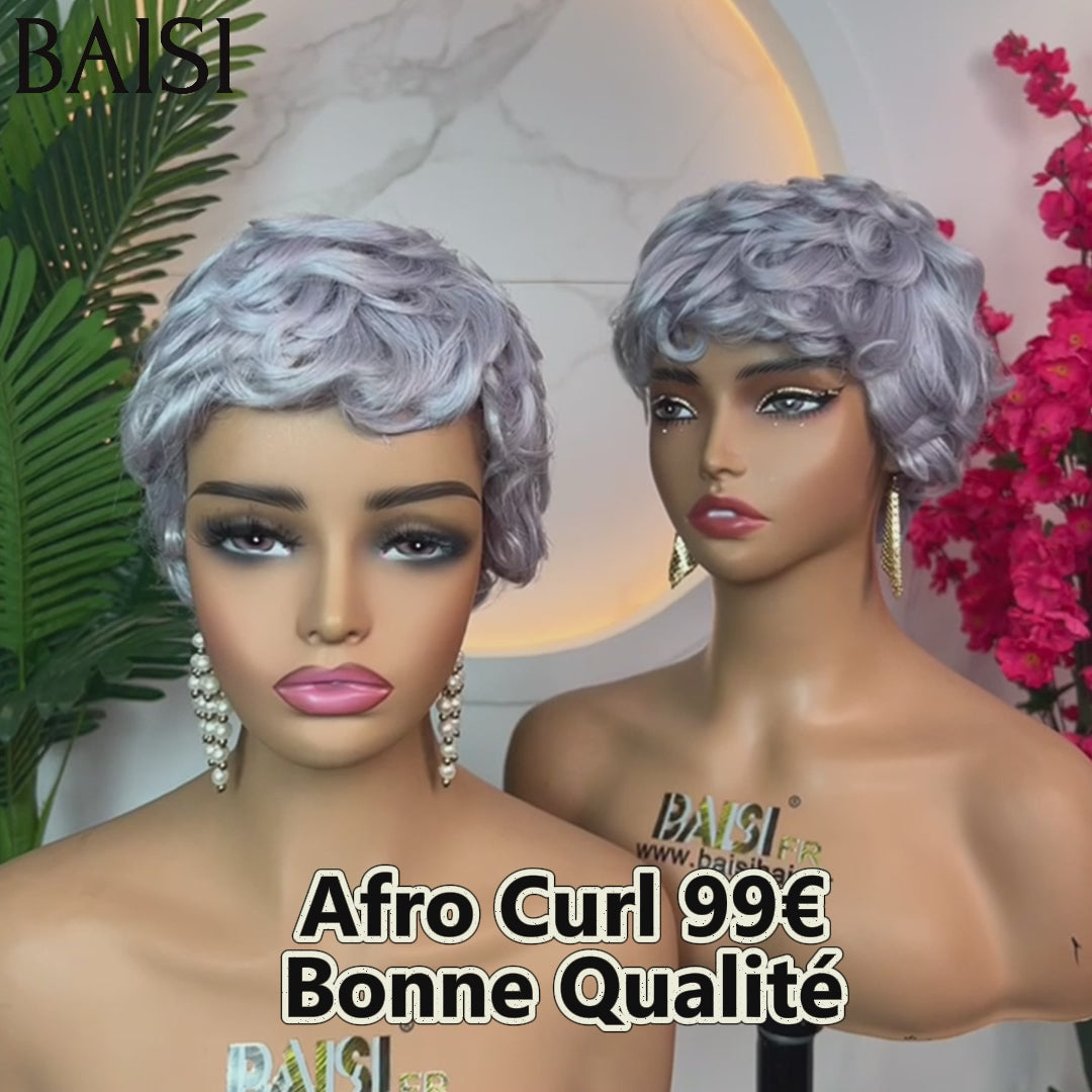 BAISI Peluca con ondas de dedo Pixie frontal de encaje 13x4 corte pequeño 6 pulgadas 79 € en cabello 100% humano B FR20