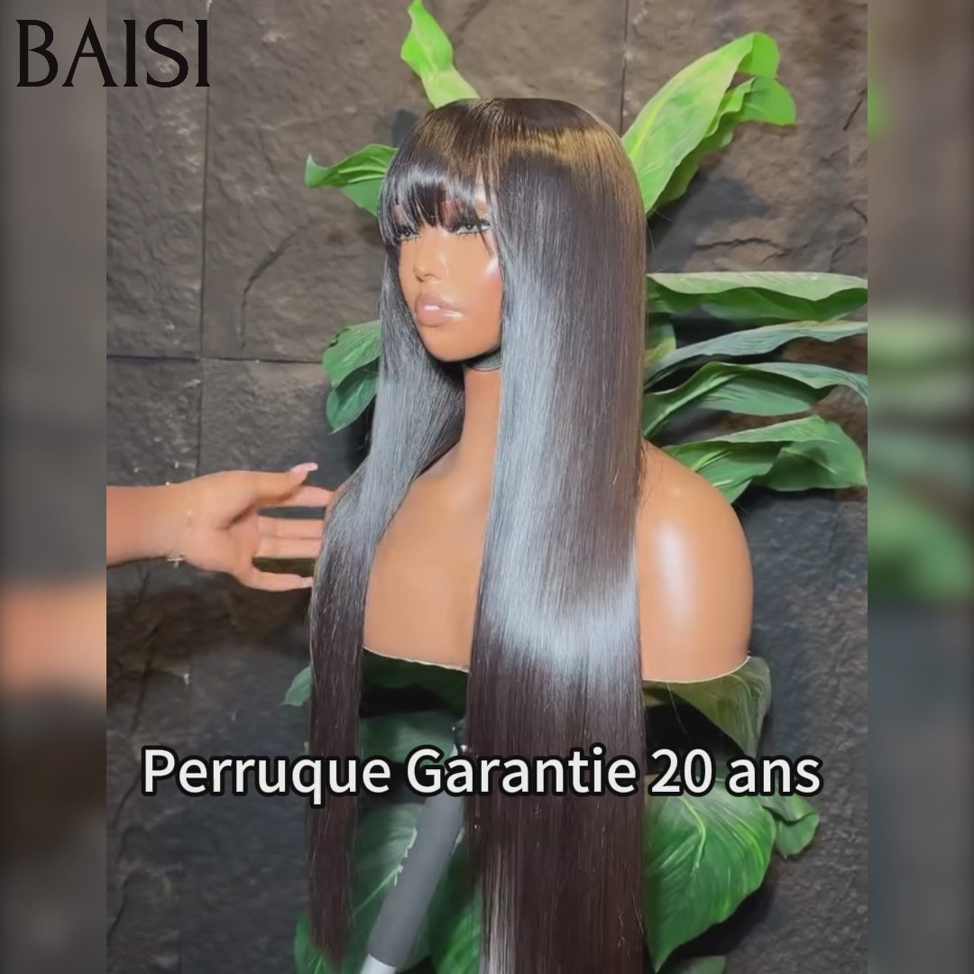 BAISI perruques 13X4 Frontal Perruque Lisse avec frange En Blonde 613# ou NOIR 1B# En 100% Vrais Cheveux Humains