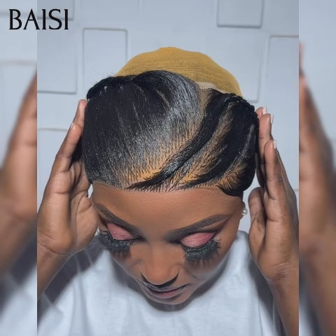 BAISI 45€ 12 Pouces Grande lace frontale avec natte prête à porter sans colle simple et efficace résultat beau et naturel