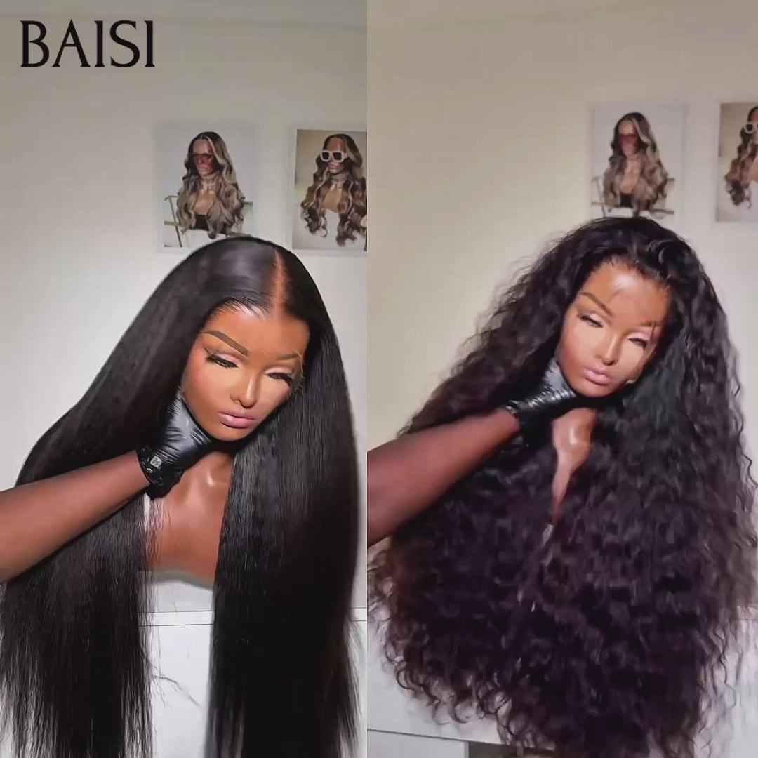 BLACK PROMO 48H reçu BAISI BLACK FRIDAY Offre limitée lace frontal 13x4 Perruque 24 Pouces Lisse ou curly wave NOIR en 100% Cheveux Humains