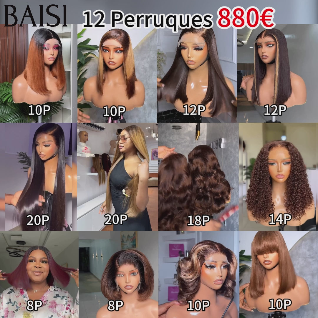 BAISI Lot De 12 Perruques Abordable 880€ En 100% Cheveux Humains Modèle personnalisé De Bonne Qualité En Promotion Code: BS65