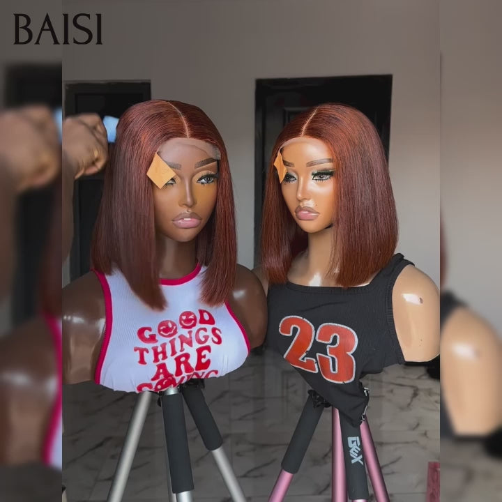 BAISI Perruque Lisse avec Frange 10 Pouces en Couleur 99J 200% densité 82€ ou 2x6 Lisse de luxe 10 Pouces Marron 119€ en 100% Cheveux Humains BS120