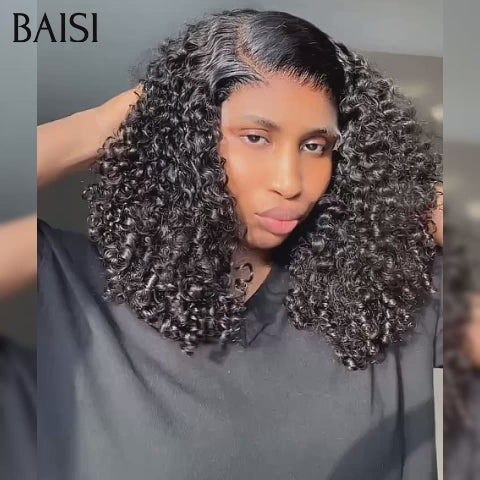 48H Livraison TVA 0€ BAISI Perruques 4x4 Lace closure Perruque 250%densité water wave NOIR en France 100% Cheveux Humains BS30