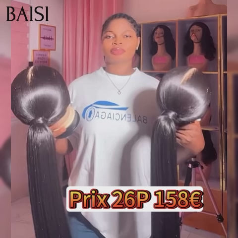 48H Livraison TVA 0€ Peluca de encaje frontal BAISI 12A 13x4 lisa y recta en cabello 100% humano
