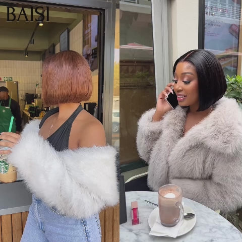 BAISI vente flash 2 perruques en Promo 120€ 4X4 lace Lisse Bob en couleur NOIR et Marron 1BT4# 10 Pouces en 100% vrais cheveux humains
