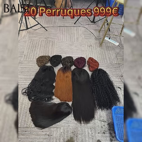 BAISI Lot de 19 perruques+1 Gratuite = 20 perruques 999€ Flash Offer PROMOTION styles de perruques différents pixie ou Lisse ou curly wave ou Body wave en 100% vrais cheveux humains FR20