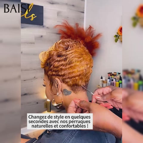 Parrucca BAISI 13X4 in pizzo Pixie Wave a colori 99J# € 65 in capelli umani al 100% BAISI20