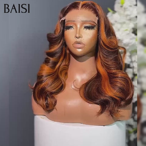 BAISI 4X4 lace closure Perruque Bouclée Egg Wave 12 Pouces 75€ Moitié Prix en couleur marron mixte orange En 100% Cheveux Humains