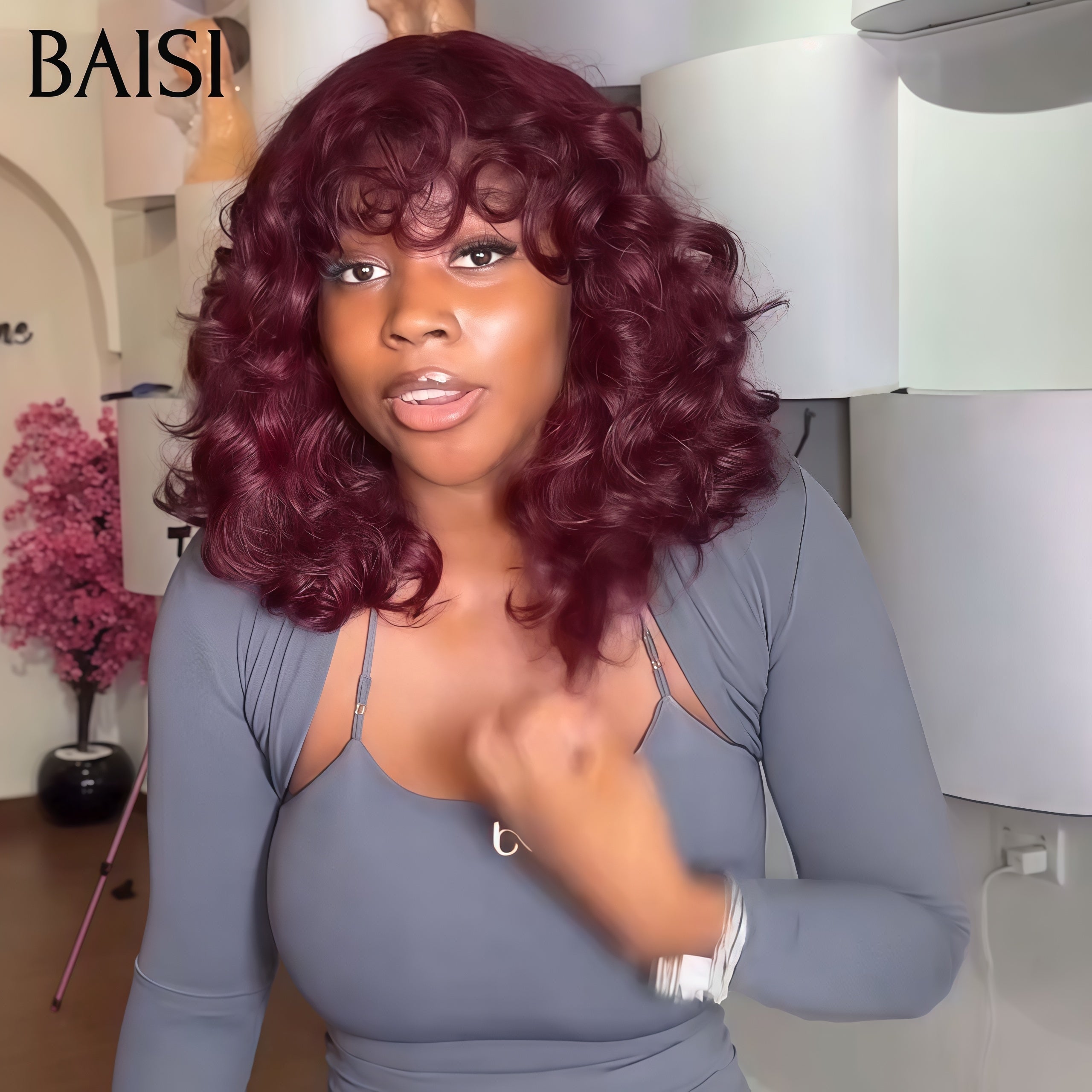 48H Livraison TVA 0€ Parrucca BAISI senza colla senza pizzo riccia a uovo marrone e bordeaux in capelli umani al 100% FR20