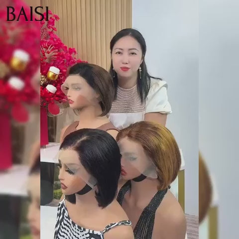 BAISI 3 Perruques 120€ promotion Ventes En Gros 13x4 Lace frontal Bob Lisse 3 couleurs Marron et Miel et NOIR en 100% Cheveux Humains