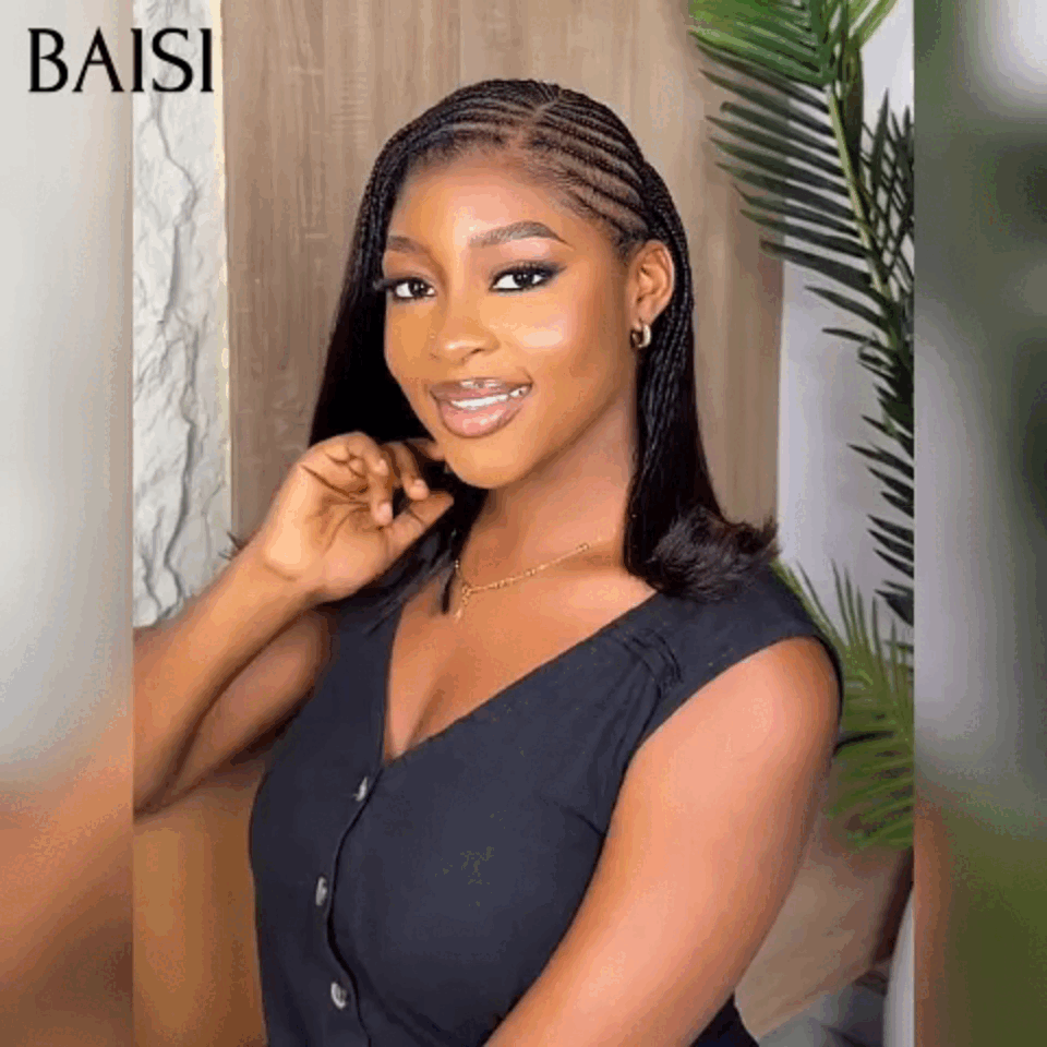 BAISI Perruque avec coiffure tressée natte Promo Moitié Prix 99€ Bob NOIR 14 Pouces facile à porter En 100% cheveux humains