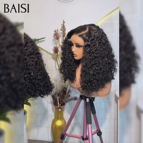48H Livraison TVA 0€ BAISI 4X4 lace water wave 14 Pouces et 13X4 Perruque 16 Pouces en Couleur blanche au queue grise somble grosse boucles sans colle En 100% Vrais Cheveux Humais Code : BS120