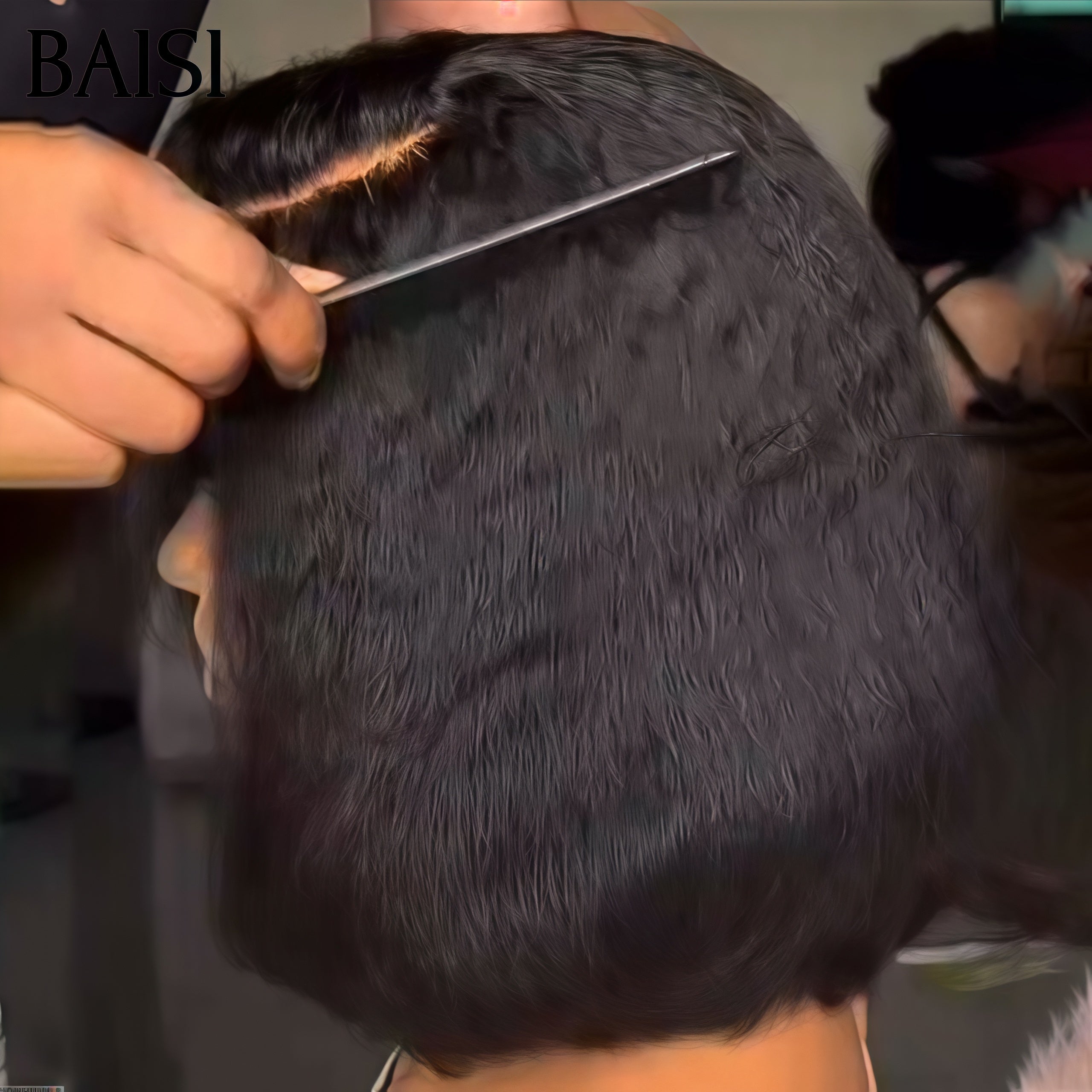 BLACK PROMO BAISI perruque 13x4 lace frontal kinky straight 10 pouces 79€ pour revendre NOIR en 100% vrais cheveux humains