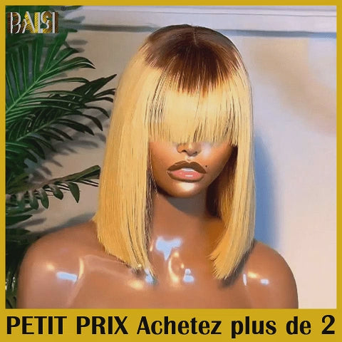 Achetez 2 Prix D'usine BAISI Achetez 2 perruques minimum au prix d'usine fournisseur Perruque chinoise avec frange en couleur miel T4#27 ou 2x6 lace lisse 8 pouces SDD straight de luxe (Pas Besoins De Code)