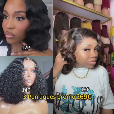BAISI HAIR FR 3 Perruques bob 269€ en Couleur Marron 1BT4# et NOIR En 100% Cheveux Humains