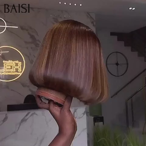 BAISI perruque Bob lisse Avec Frange en couleur P4-27 avec racine NOIR de Luxe 8 Pouces 100% Vietnam Hair