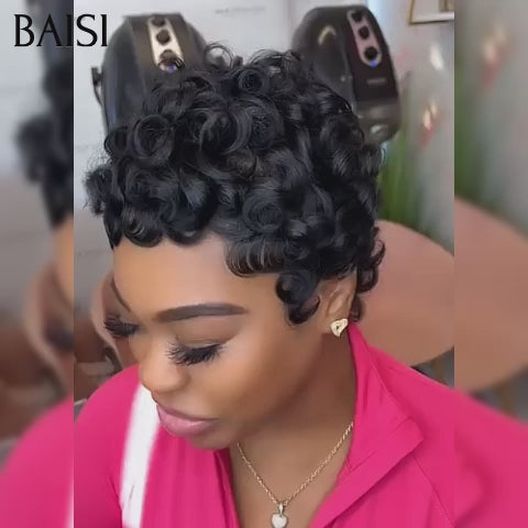 48H Livraison TVA 0€ BAISI Vendita Flash 39€ Acconciatura Pixie Finger Wave in Francia 13x4 Fronte in Pizzo Parrucca Personalizzata con la Righetta Laterale in Colore Naturale