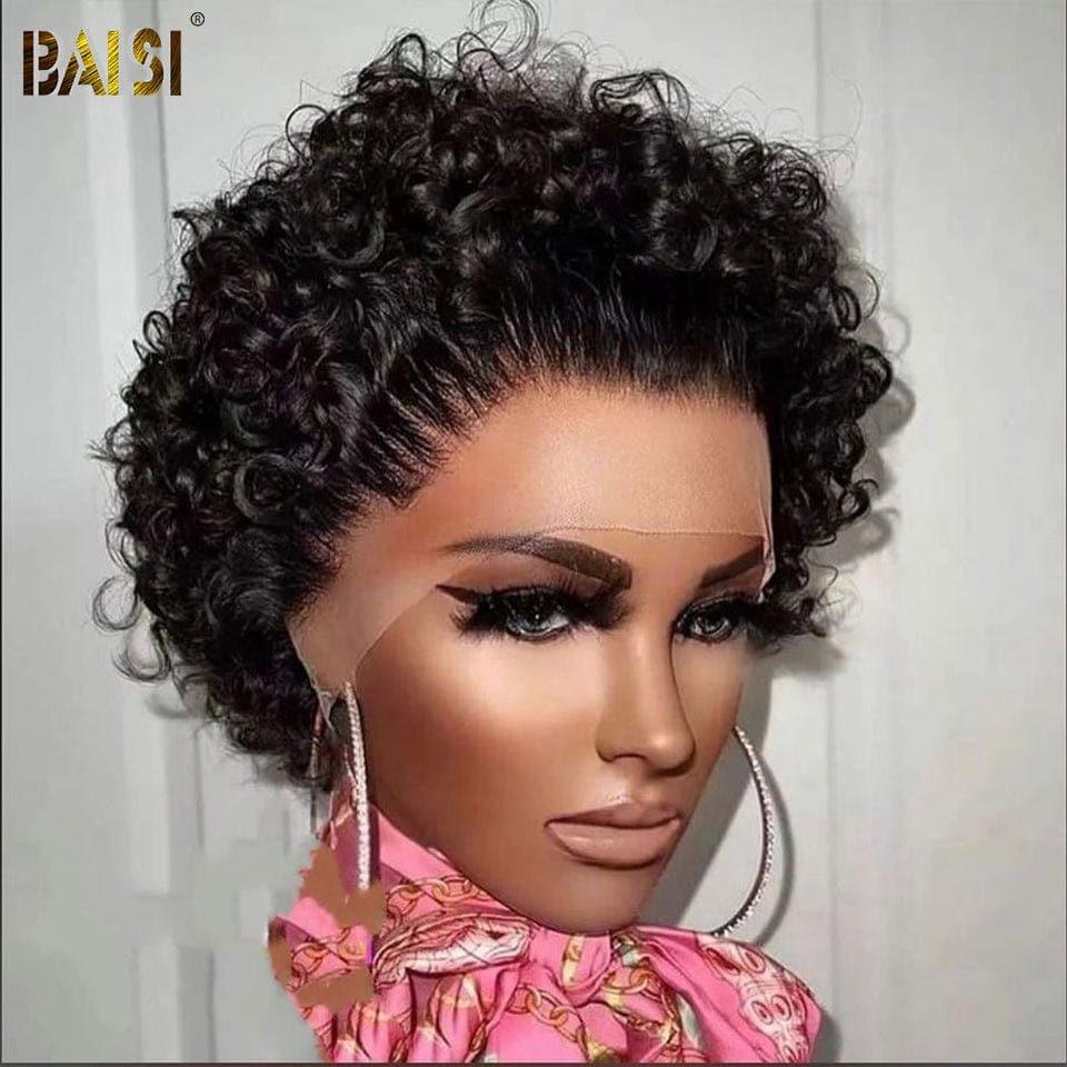 Achetez 2 Prix D'usine BAISI Achetez 2 perruques minimum au prix d'usine fournisseur 13x4 Lace Perruque pixie curly en 100% Vrais Cheveux Humains (Pas Besoins De Code)