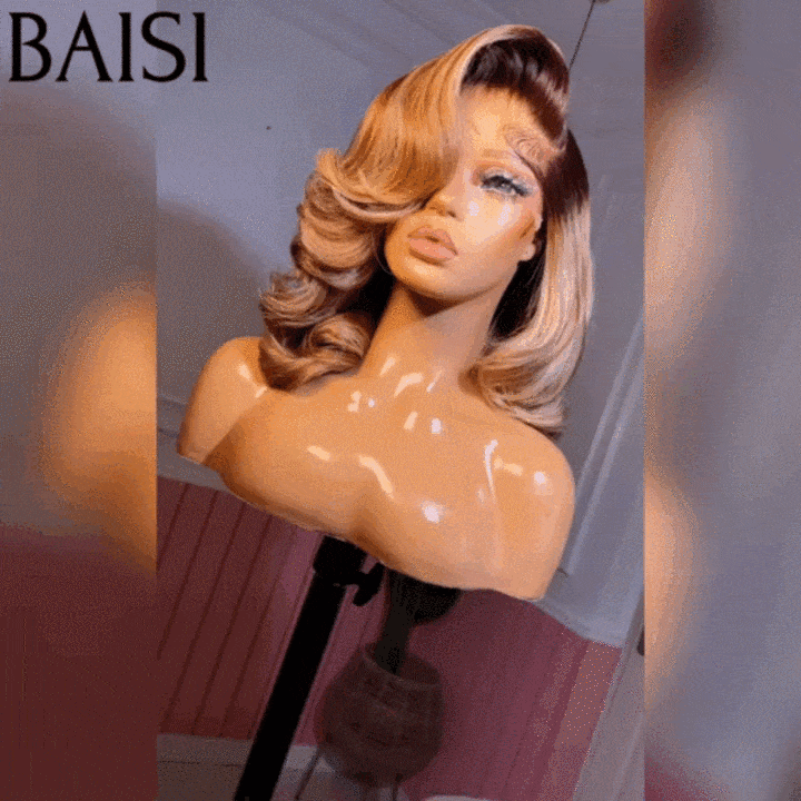 BAISI 13x4 Frontal Perruque bob 12 Pouces BOUCLES en couleur personnalisées 1B/MIXTE 250% densité plus de 20 ans d' utilisations en 100% Raw Hair