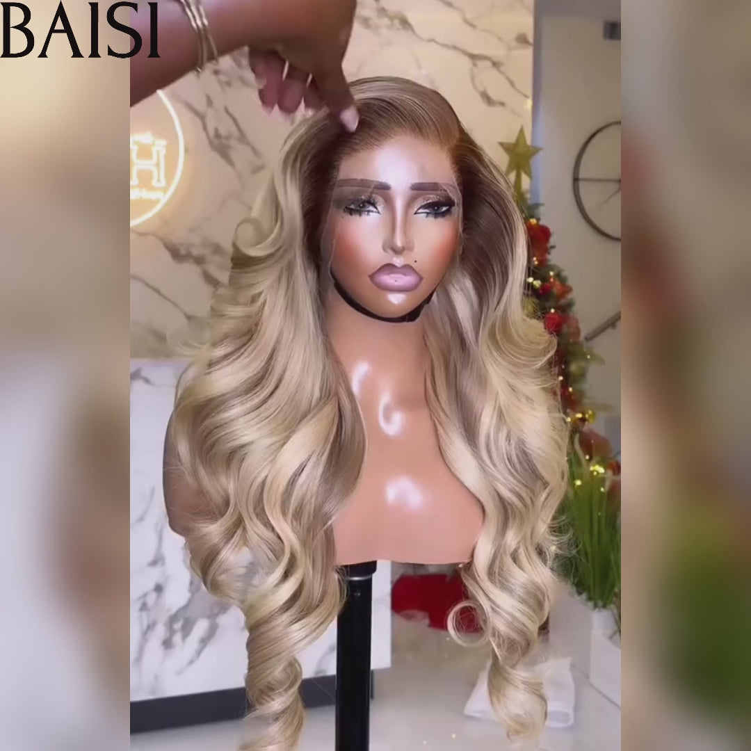 BAISI 13X4 Frontal Perruque Body Wave En Blonde Avec les Racines Marron #4#613 En 100% Vrais Cheveux Humains
