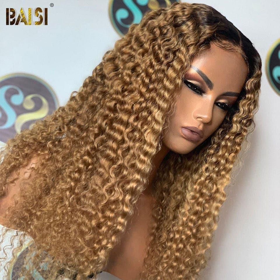 BAISI 13x4 Frontal Perruque Deep wave en couleur #1B#27 Pré-plucked Pas Besoin de Colle en 100% Raw Hair Lace déjà couper