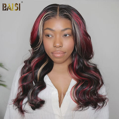 BAISI 13x4 Frontale Lace Perruque Lisse en couleur Marron Mixte Miel ou Body Wave En Couleur rouge Blanc mix noir 18 Pouces En 100% Cheveux Humains