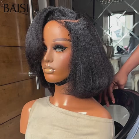BAISI 13X4 lace frontal Perruque Bob 85€ Kinky Straight 10 pouces En couleur Marron 1BT4# ou Noir en 100% Raw Hair 4C Hairline 300% densité plus de 20 ans d' utilisations 100% Cheveux Humains