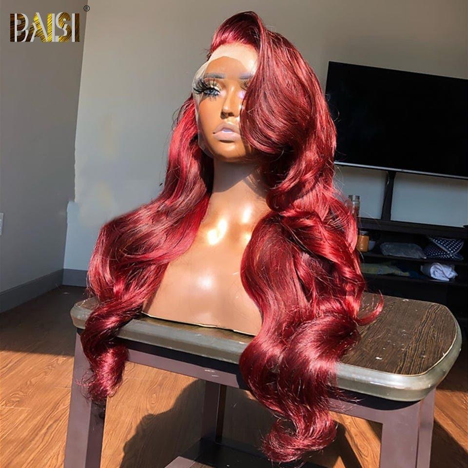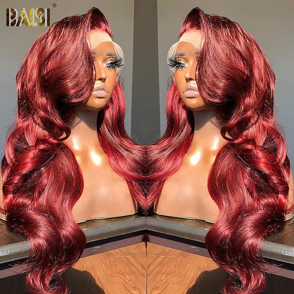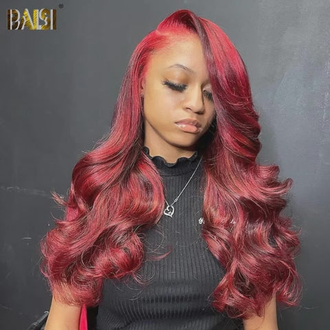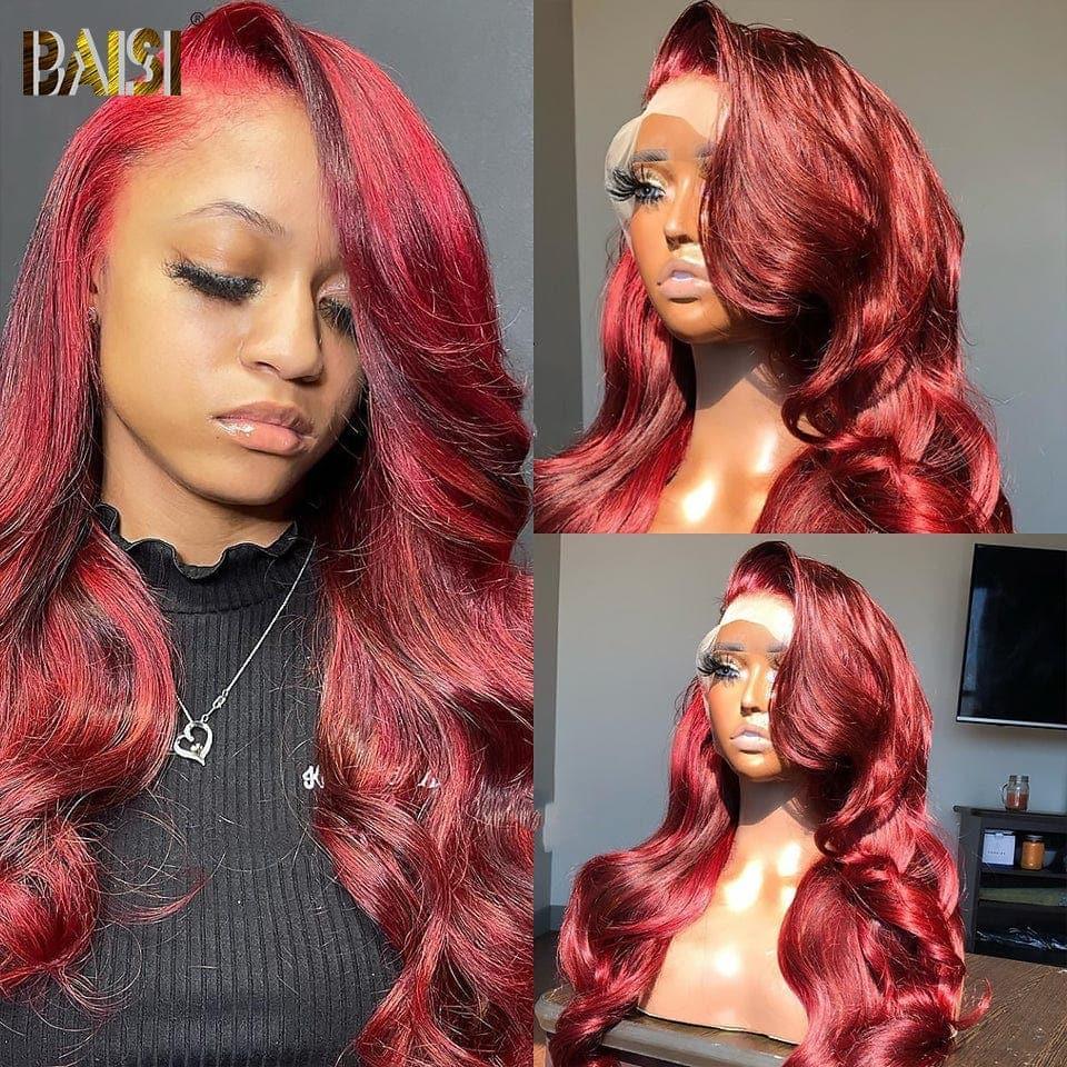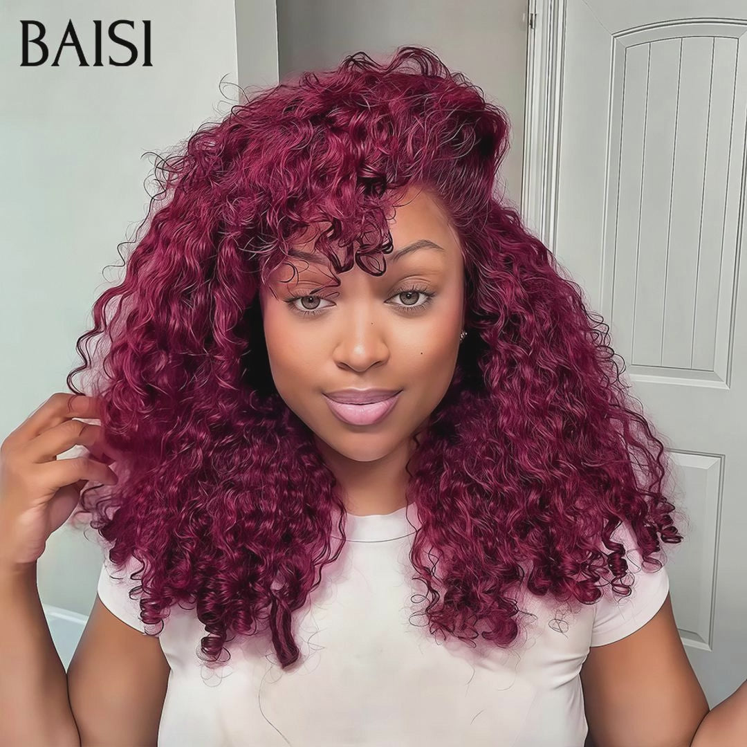 BAISI BLACK FRIDAY BAS Prix 100€ 13x4 Lace Frontal Perruque curly Wave Highlight Bordeaux en 100% Cheveux Humains