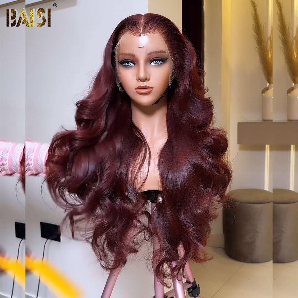 Achetez 2 Prix D'usine BAISI Achetez 2 perruques minimum au prix d'usine fournisseur 13x4 Lace Frontal Perruque Body Wave Rouge Bordeaux Sans Colle Lace déjà couper Facile à Porter En 100% Cheveux Humains (Pas Besoins De Code)