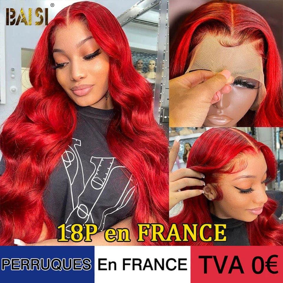 BAISI 13x4 Lace Frontal Perruque Body Wave Rouge en 100% Cheveux Humains