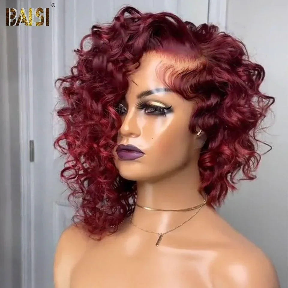 BAISI 13X4 lace Perruque Naturelle wave bob En Couleur Bordeaux 99J# en 100% Cheveux Humains